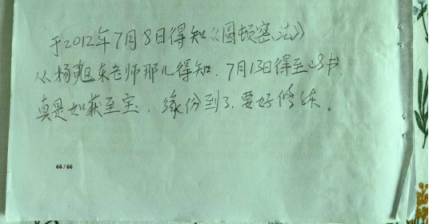 楊旭東早期的“中功”學(xué)習(xí)筆記