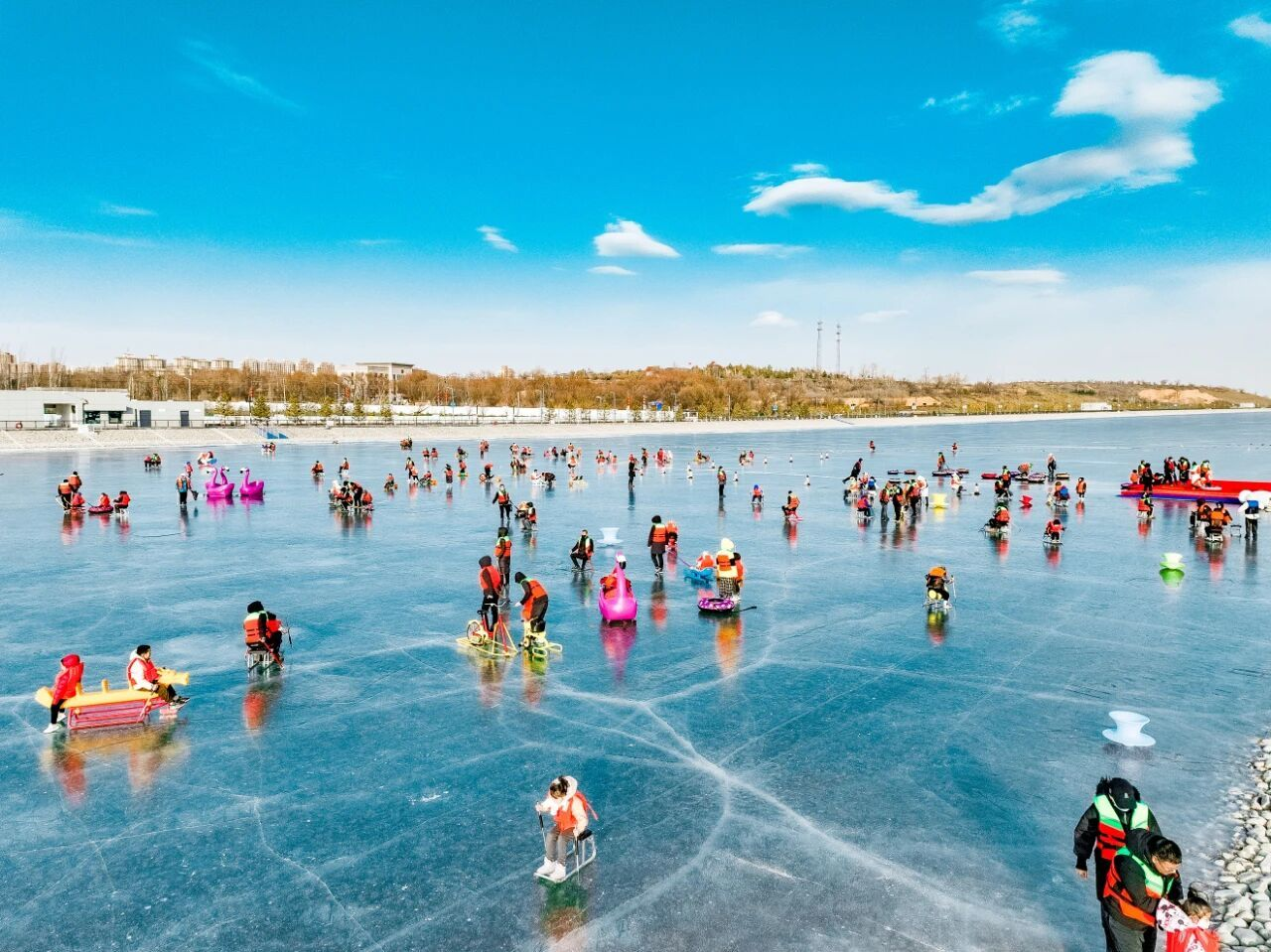在榆林市科創(chuàng)新城的水上運動中心,光潔的冰面同樣熱鬧非凡,工作人員正為即將到來的冰雪嘉年華做最后準備。項目負責人張偉介紹,中心自開放以來,已成為市民和游客體驗冰雪樂趣的重要場所。