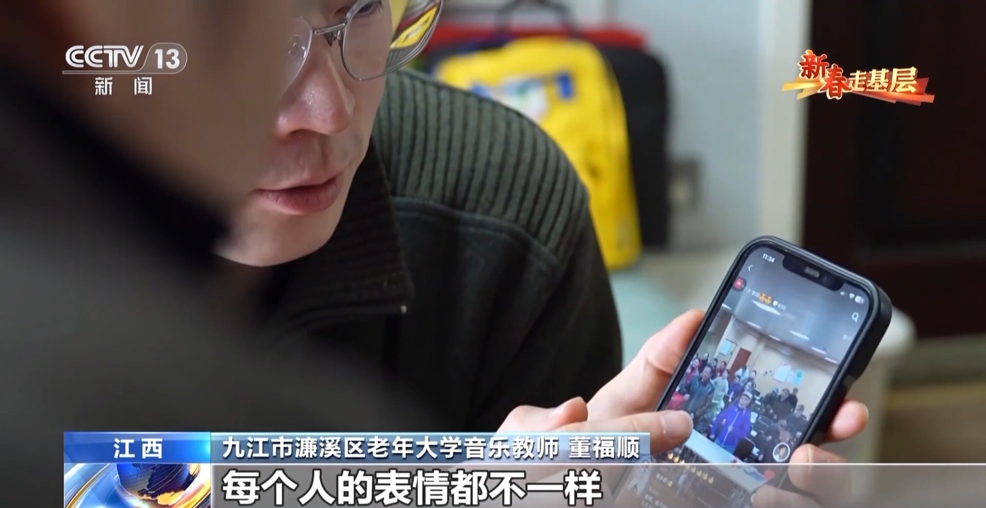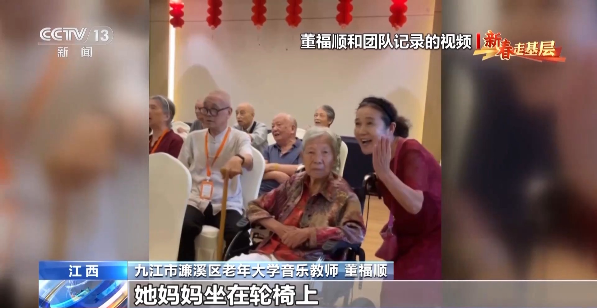 董福順在大學(xué)學(xué)的是聲樂,在九江市老年大學(xué)已經(jīng)當(dāng)了9年的音樂老師。這個臘月趁著老年大學(xué)放假,他把課堂搬進了社區(qū)、村莊和養(yǎng)老院,免費帶大家上課。