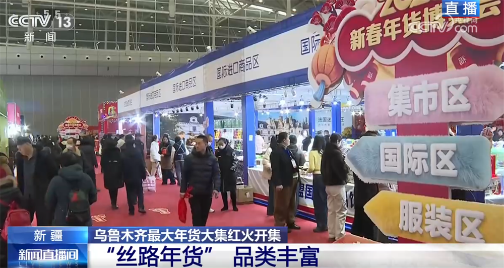 在烏魯木齊市年貨大集的現(xiàn)場,大家可以看到,采購年貨的市民非常多。這個大集面積達1.4萬平方米,攤位數(shù)量超過400家,產(chǎn)品種類也特別豐富。