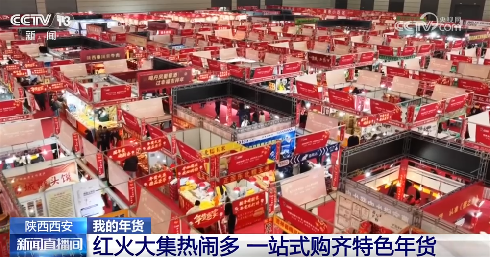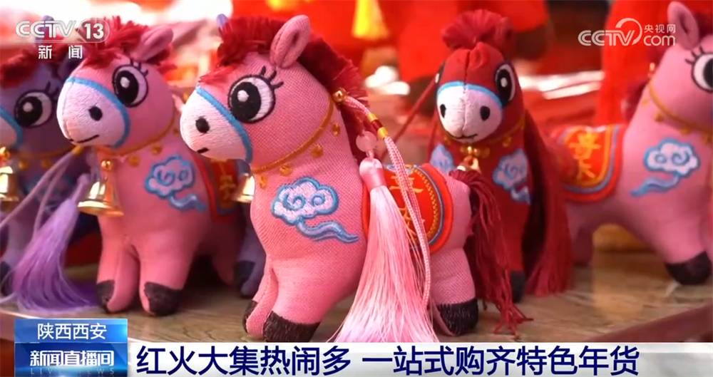 歡迎大家跟隨我們的鏡頭來到西安市浐灞區(qū)的年貨集市現(xiàn)場。大家看,集市已經(jīng)完全被喜慶的紅色和熱鬧的人群包圍了。這里展出面積約1.6萬平方米,每天都有超過1.5萬人來這里購買年貨。今年的年貨節(jié)主打全面和實惠,從地道的臘牛羊肉、糕點干果到充滿巧思的“馬”年文創(chuàng)、非遺手作、年畫對聯(lián),可以說是“一站式”購齊陜西年味。接下來去看看,西安的街坊鄰里、八方來客都在這里買了什么年貨。