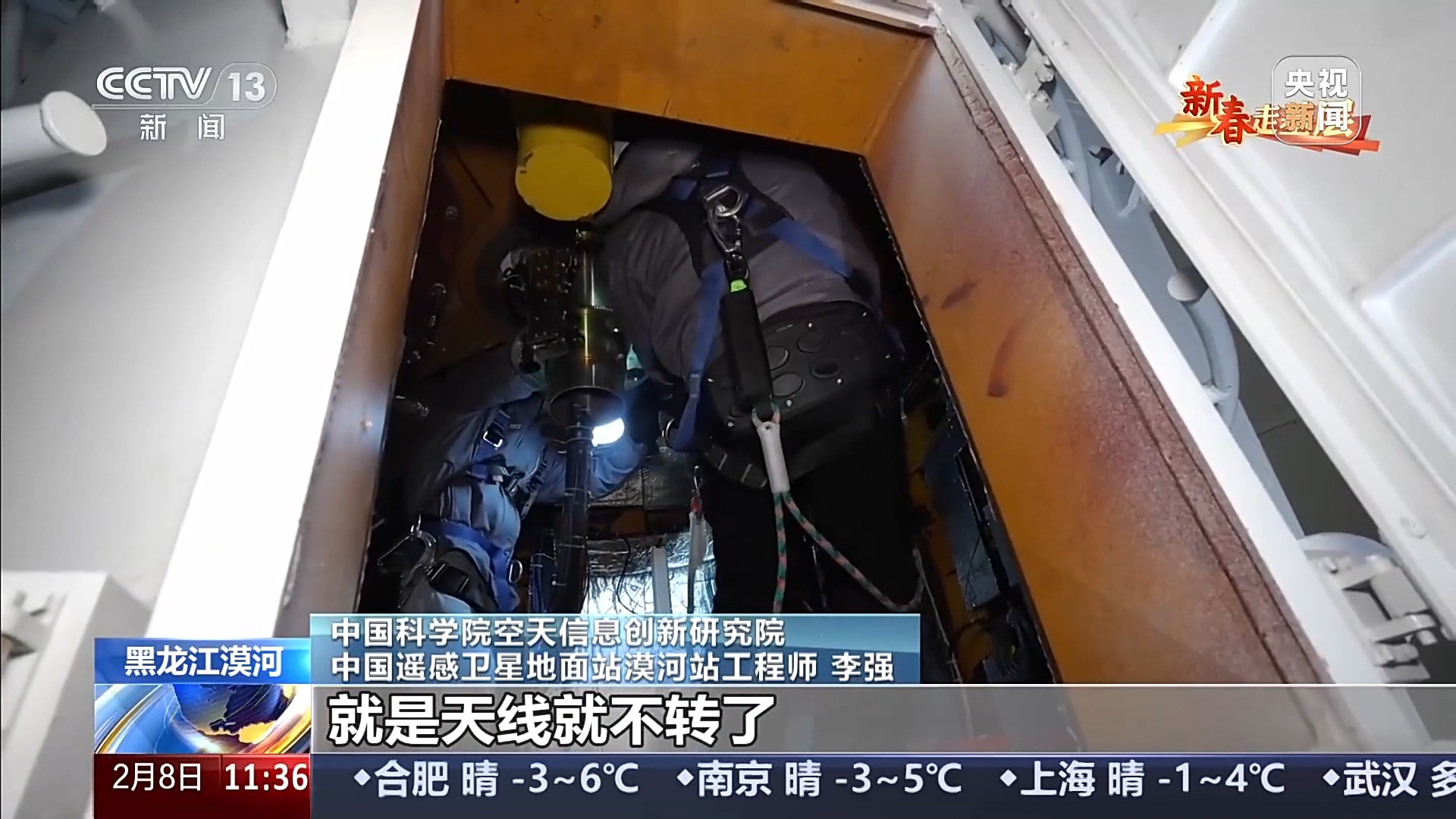 中國科學(xué)院空天信息創(chuàng)新研究院 中國遙感衛(wèi)星地面站漠河站站長 施勝浦:極寒條件,熱脹冷縮,一些接頭就會變松,主要是看一下接頭。