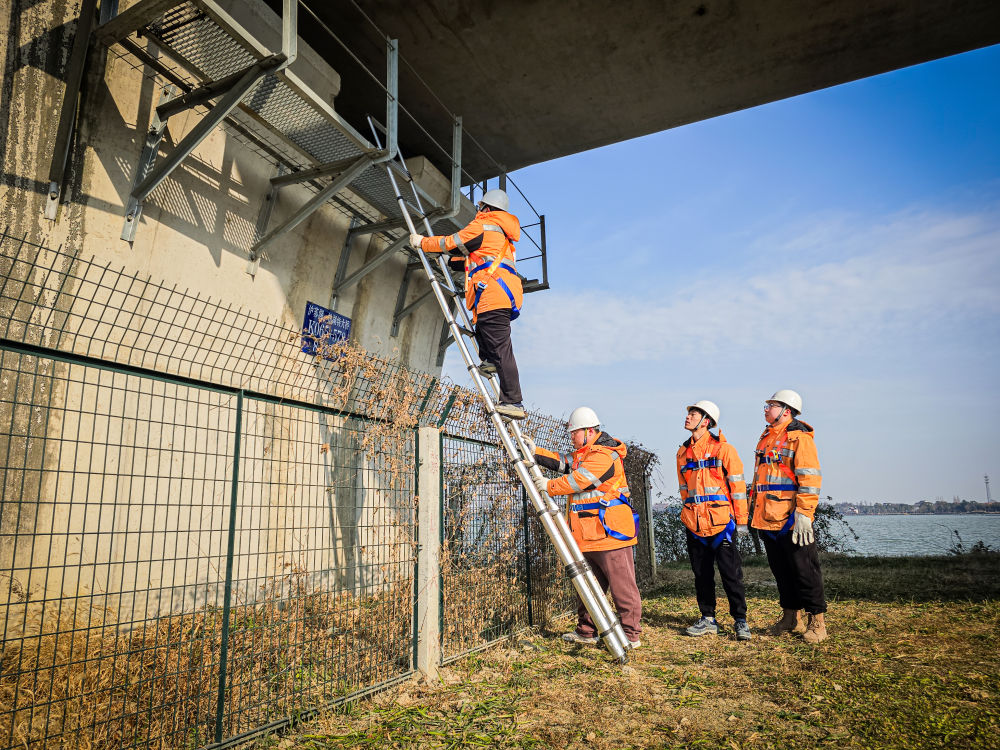 春運(yùn)期間,上海高鐵基礎(chǔ)設(shè)施段湖州車間橋梁組工作人員在滬蘇湖高鐵元蕩湖段進(jìn)行檢修作業(yè)。