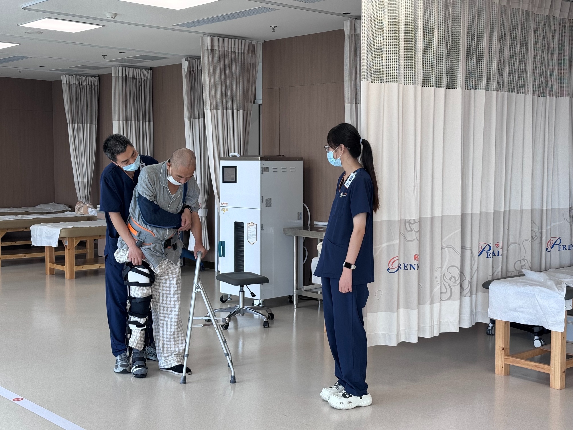 “非常好,慢慢走,不要急……”在天津鵬瑞利康復(fù)醫(yī)院內(nèi),康復(fù)治療師輕扶著手扶訓(xùn)練器上的患者緩緩邁步,不時(shí)用手勢(shì)示意其調(diào)整重心。窗外,高鐵呼嘯而過(guò),為各地患者架起便捷通道,讓他們?cè)趯?zhuān)業(yè)診療與貼心照護(hù)中,重燃康復(fù)的希望?!澳壳埃t(yī)院有10%以上的專(zhuān)家來(lái)自北京,他們定期來(lái)津坐診、手術(shù),讓天津及周邊地區(qū)的患者在家門(mén)口就能享受到優(yōu)質(zhì)醫(yī)療資源。這種人才流動(dòng)的便利,也正是毗鄰天津南站區(qū)位優(yōu)勢(shì)賦予的獨(dú)特紅利?!眲⒌じ嬖V記者,同時(shí)醫(yī)院已正式開(kāi)通異地醫(yī)保直接結(jié)算和商保支付功能,輻射效應(yīng)也更加顯著。