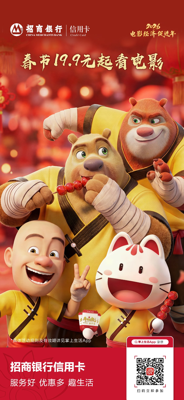 即日起至春節(jié)期間,招商銀行將聯(lián)合春節(jié)檔熱門影片《熊出沒·年年有熊》與《飛馳人生3》開啟全國商圈IP路演活動,還將整合商圈內(nèi)餐飲、零售、影院等多業(yè)態(tài)開展促消費相關(guān)活動,助力提振新春線下消費需求。預(yù)計活動將落地北京、天津、成都、西安等多地。