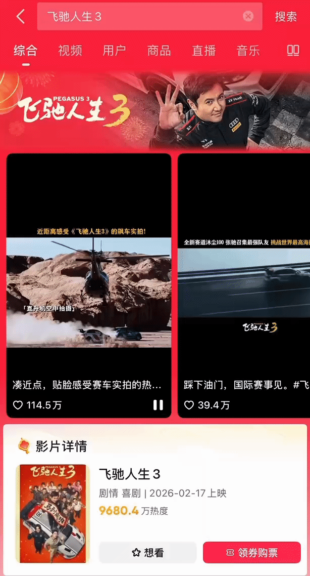 2026年2月10日至2026年2月28日,用戶可以通過抖音App、抖音極速版App、抖音火山版App任一渠道,搜索春節(jié)檔影片名進入春節(jié)電影會場頁面,點擊【領(lǐng)券購票】即有機會領(lǐng)取選座購票優(yōu)惠券;活動期間還可瀏覽選購影院優(yōu)惠團購,套餐福利享不停!