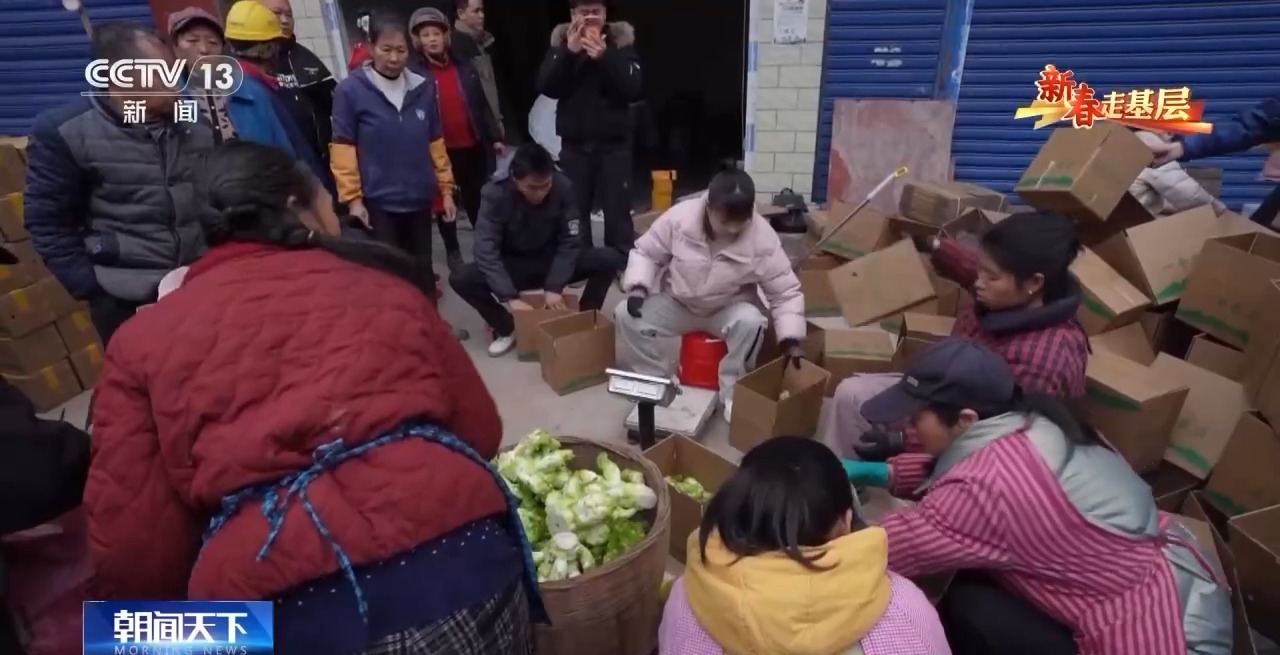 收來的菜,會(huì)通過電商幫菜農(nóng)賣掉。一大早,上百名菜農(nóng)帶著上萬斤土豆和兒菜趕過來。