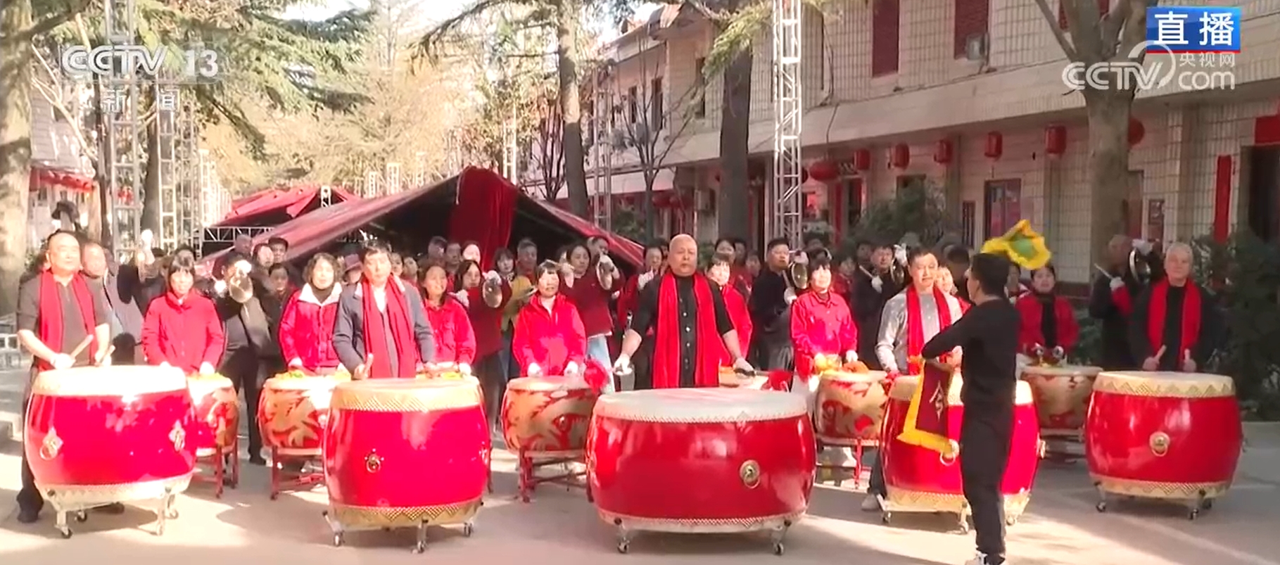 總臺記者 張恩雨:此刻,我是在袁家村的村口,同時也是村里百人鑼鼓隊表演的現(xiàn)場。在陜西關(guān)中農(nóng)村地區(qū),每年過年每個村子都會有這樣的鑼鼓表演,村民們告訴我,鑼鼓聲一響,年就到了。大家可以看到,我身后的鑼鼓隊隊員們是激情昂揚、氣勢如虹。這些鏗鏘有力的鼓點,正是關(guān)中地區(qū)非常有名的曲目《秦漢戰(zhàn)鼓》,沒有繁復(fù)的花腔,而是重在力量和氣勢。特別值得一提的是,這支隊伍里年齡最大的已經(jīng)75歲,最小的只有26歲,而且所有人都是零基礎(chǔ)的村民,僅僅集中學(xué)習(xí)了10來天,就呈現(xiàn)出了今天這樣的氣勢。