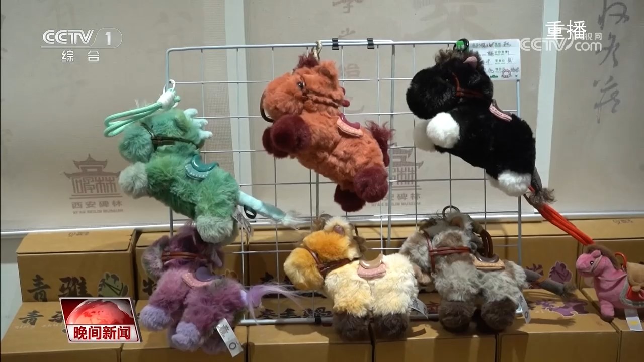 在西安碑林博物館,以唐代“昭陵六駿”石刻為原型的毛絨玩具集歷史文化和現(xiàn)代設(shè)計(jì)于一體,線下門店經(jīng)常賣斷貨。