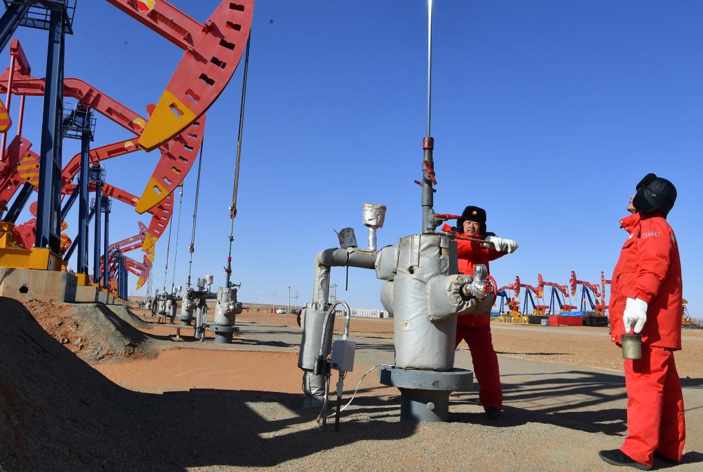 吉蘭泰油區(qū)工人正在巡檢油井。新華社記者李云平 攝