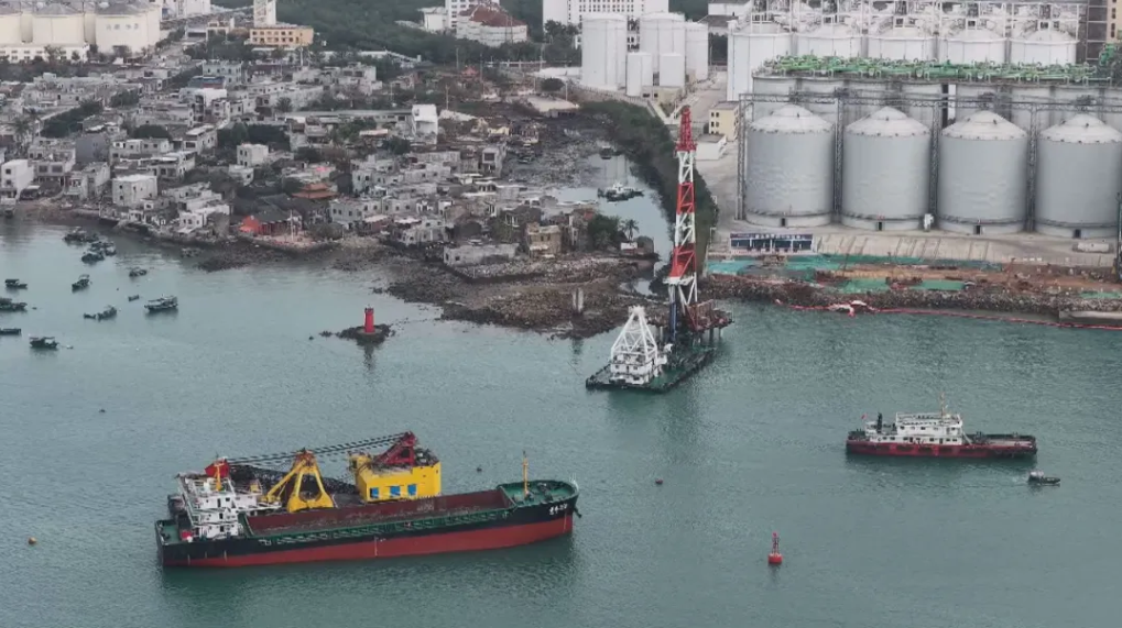 這是國(guó)投洋浦港10萬(wàn)噸級(jí)公共糧油碼頭施工現(xiàn)場(chǎng)。(受訪者供圖)