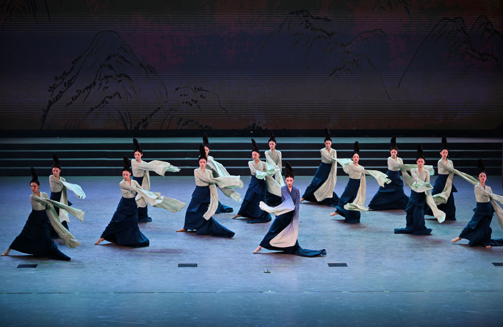 2023年7月29日,演員在聯(lián)歡會現(xiàn)場表演《只此青綠》。當晚,“青春 In Time”第31屆世界大學生夏季運動會運動員聯(lián)歡會在成都大運村藝術(shù)中心大劇場舉辦。聯(lián)歡會以魔術(shù)、舞蹈、演唱等藝術(shù)形式為橋梁,推動中外青年藝術(shù)家、運動員、大學生及志愿者代表互動交流,營造歡樂、友愛的大運氛圍。