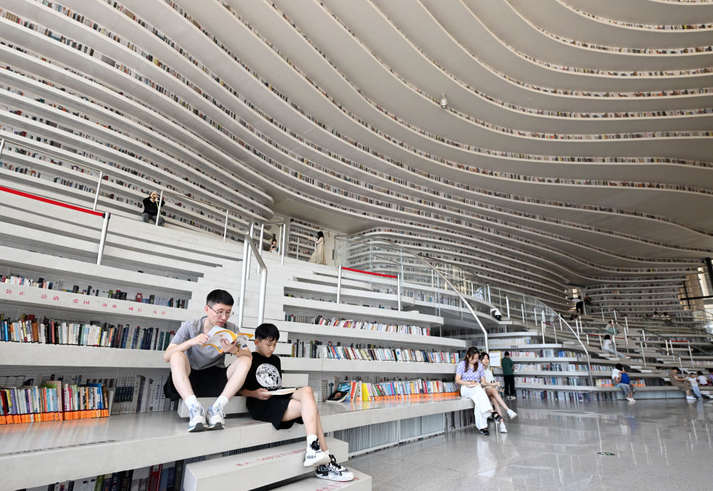 2024年8月27日,市民在天津濱海新區(qū)圖書館內(nèi)閱讀。有著“濱海之眼”之稱的濱海新區(qū)圖書館位于天津濱海文化中心,目前已成為天津濱海新區(qū)的文化“新地標”。