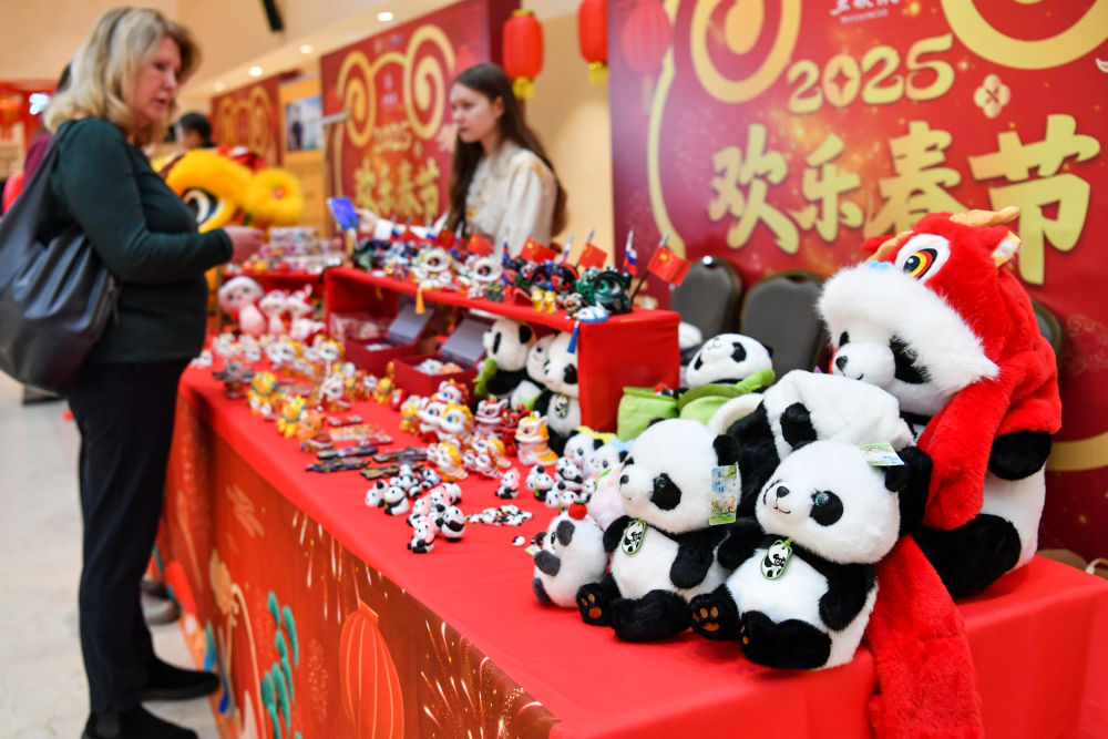 2025年1月28日在俄羅斯莫斯科舉行的新春廟會活動上拍攝的文創(chuàng)產(chǎn)品。
