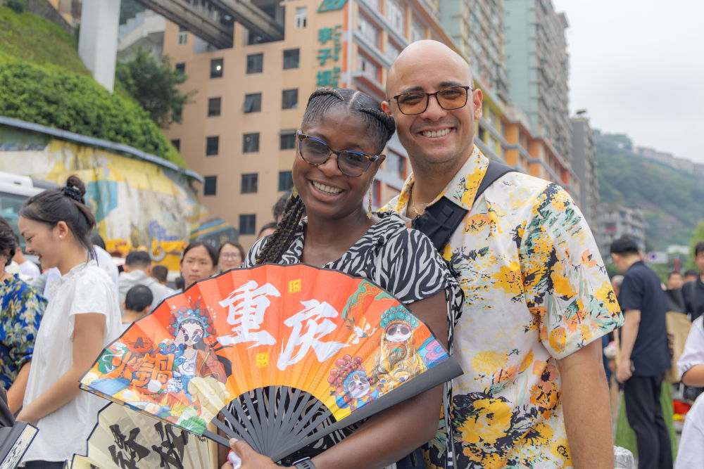 2025年10月3日,加拿大游客克里斯提安(左)和家人在重慶市渝中區(qū)李子壩游玩。近年來,不斷優(yōu)化的入境政策為境外游客赴華提供了更多便利,“來華旅游攻略”“赴華購物清單”等成為國外社交媒體熱門搜索關(guān)鍵詞,“China Travel”的熱度延續(xù)至今。山城重慶憑借其獨特的城市景觀和風土人情,吸引不少外國游客前來品嘗美食、打卡景點、體驗文化。