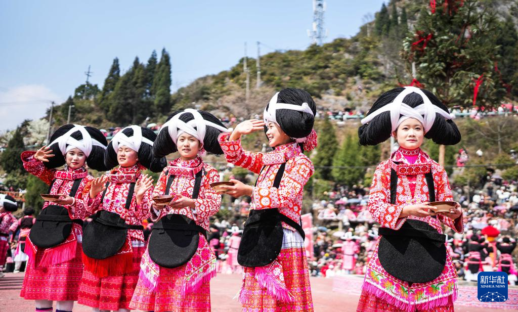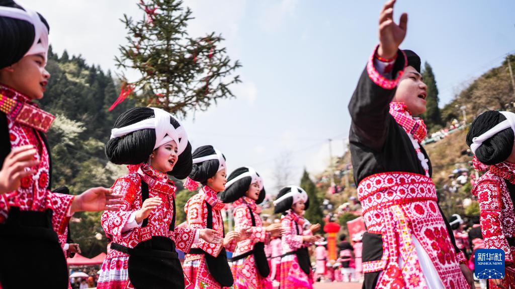 2月26日,在貴州省六盤水市六枝特區(qū)梭戛苗族彝族回族鄉(xiāng)高興村跳花場(chǎng),苗族群眾在演唱歌曲。
