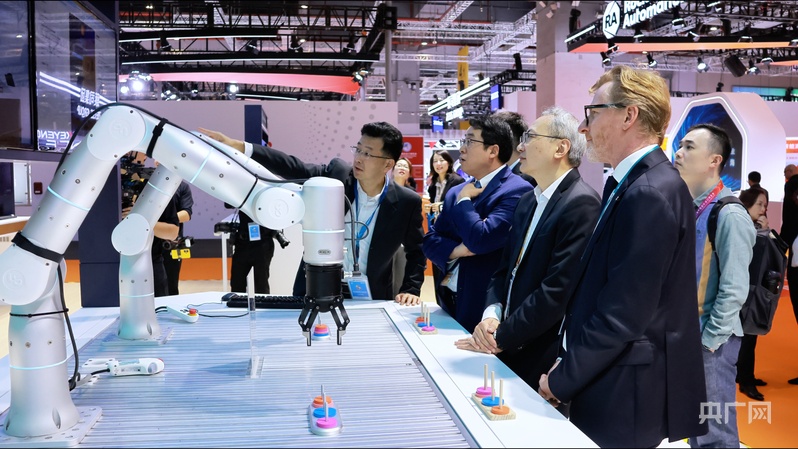 第八屆進(jìn)博會上,科技企業(yè)展商在向觀眾介紹產(chǎn)品(央廣網(wǎng)記者 何智康 攝)
