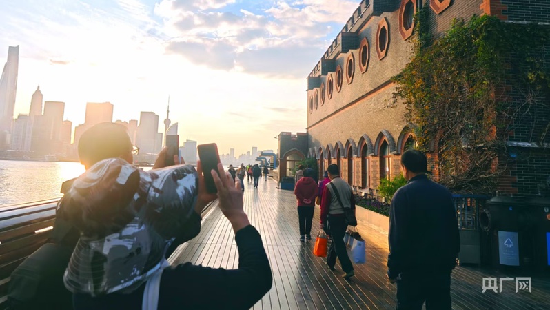 市民游客漫步楊浦濱江岸線,不時駐足“打卡”(央廣網(wǎng)記者 馮麗 攝)