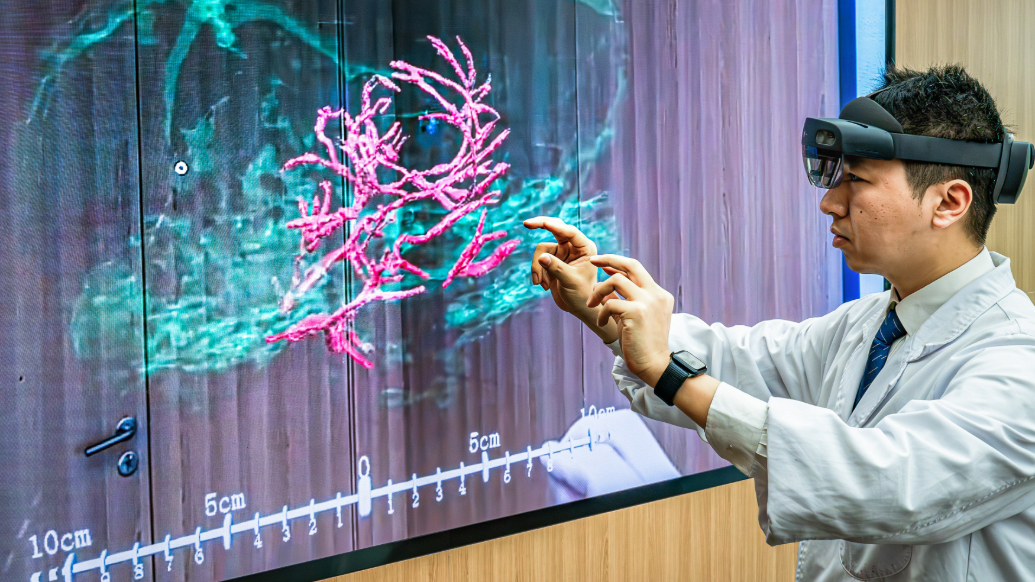 2025年3月26日,科研人員通過微米級腦機(jī)接口混合現(xiàn)實(shí),精準(zhǔn)呈現(xiàn)腦機(jī)接口與大鼠大腦主要血管和腦組織的空間位置關(guān)系。新華社圖