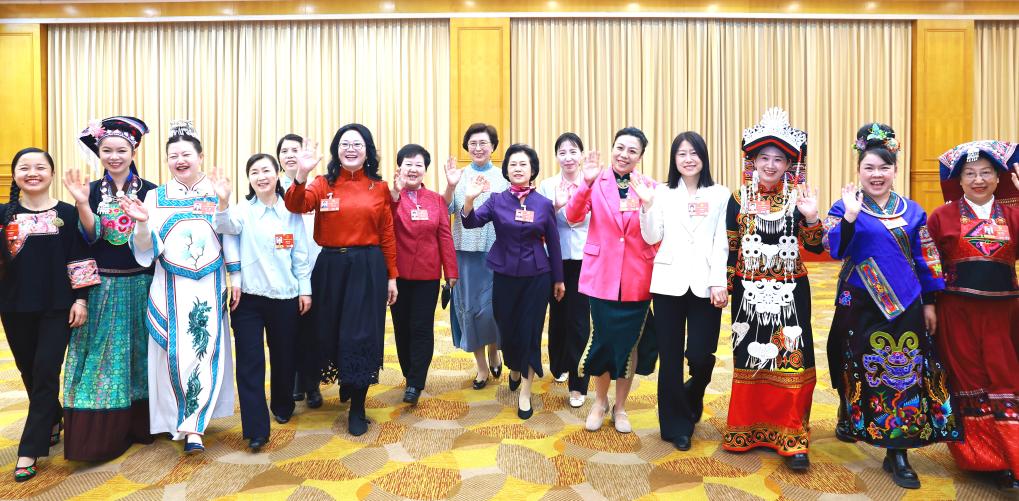 圖為貴州代表團的女代表們在一起。(受訪者供圖)