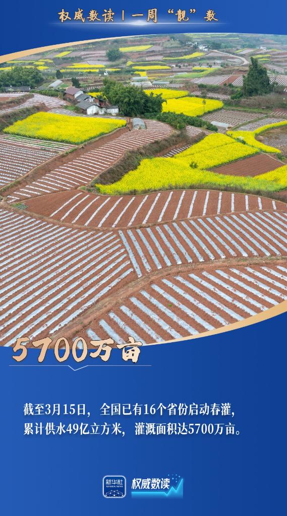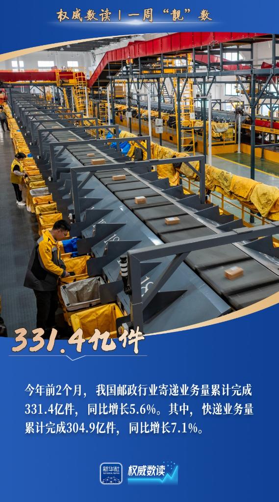 今年前2個(gè)月,我國郵政行業(yè)寄遞業(yè)務(wù)量累計(jì)完成331.4億件;全國規(guī)模以上工業(yè)增加值同比增長6.3%;截至3月15日,全國已有16個(gè)省份啟動春灌,累計(jì)供水49億立方米,灌溉面積達(dá)5700萬畝……本周,這些數(shù)據(jù),最值得關(guān)注!