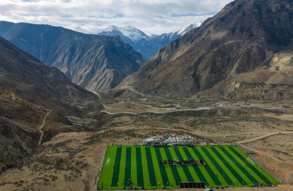 西藏昌都市洛隆縣馬利鎮(zhèn)足球場(無人機照片)。新華社記者 姜帆 攝
