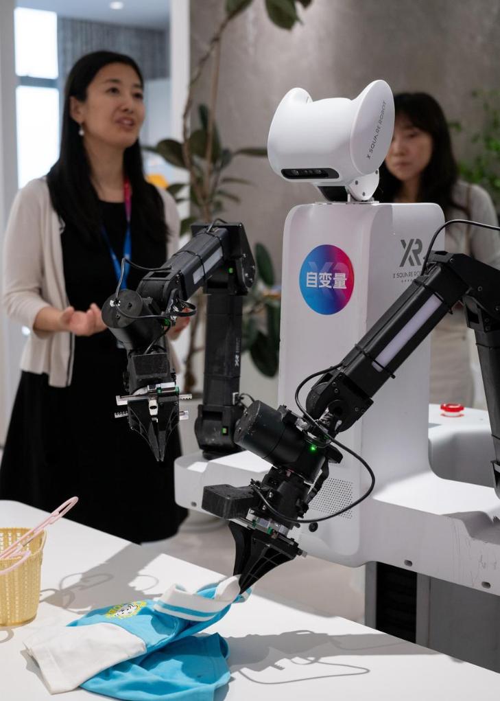 在深圳市南山區(qū)自變量機(jī)器人科技(深圳)有限公司,機(jī)器人執(zhí)行整理衣服任務(wù)。新華社記者 劉夢琪 攝