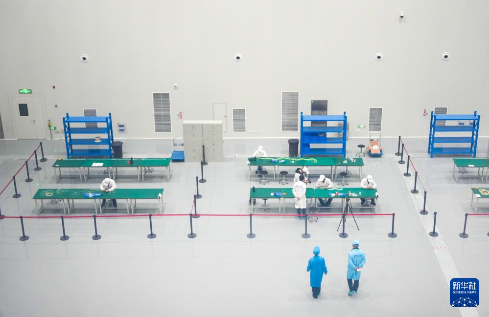 在濟南衛(wèi)星產(chǎn)業(yè)發(fā)展集團有限公司總裝基地,工作人員在衛(wèi)星生產(chǎn)車間工作(3月29日攝)。新華社記者 徐速繪 攝