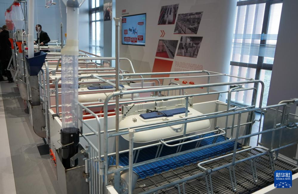 這是在大牧人機械(膠州)有限公司展示的畜禽養(yǎng)殖裝備(3月26日攝)。新華社記者 徐速繪 攝