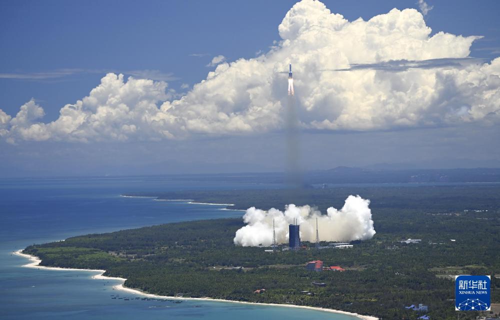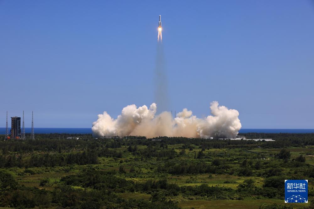 2022年7月24日14時(shí)22分,搭載問(wèn)天實(shí)驗(yàn)艙的長(zhǎng)征五號(hào)B遙三運(yùn)載火箭,在我國(guó)文昌航天發(fā)射場(chǎng)準(zhǔn)時(shí)點(diǎn)火發(fā)射,約495秒后,問(wèn)天實(shí)驗(yàn)艙與火箭成功分離并進(jìn)入預(yù)定軌道,發(fā)射取得圓滿成功。新華社記者 李剛 攝