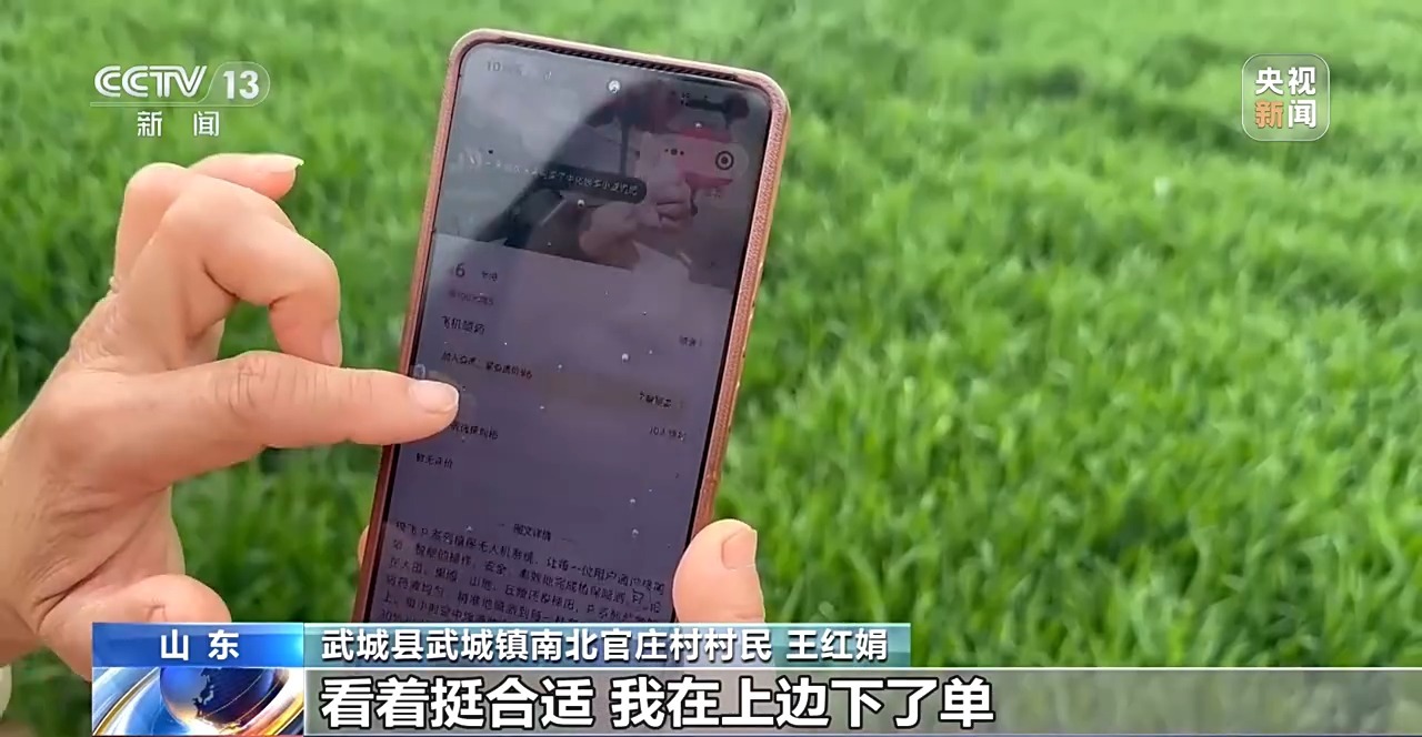 武城縣武城鎮(zhèn)南北官莊村村民 王紅娟:現(xiàn)在手機(jī)上有一個(gè)小程序,農(nóng)藥、飛機(jī)噴灑都是明碼標(biāo)價(jià),看著挺合適,我在上邊下了單,不到半小時(shí)的時(shí)間就噴完了。