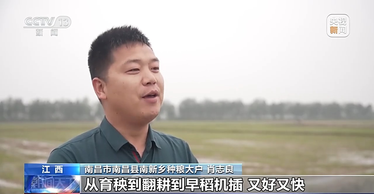 江西南昌市南昌縣南新鄉(xiāng)種糧大戶 肖志良:從育秧到翻耕到早稻機(jī)插,又好又快,包括后期的田間管理,收割也全部是機(jī)械化,像我一個(gè)人就種了500多畝田非常輕松。