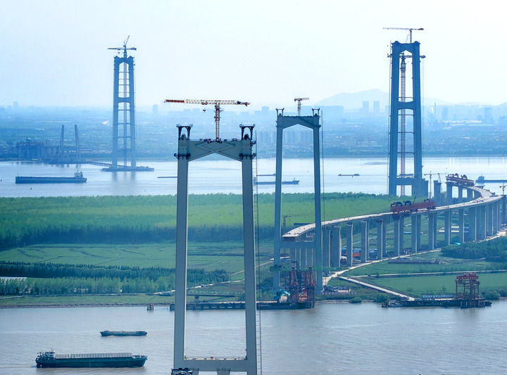 春日暖風(fēng)掠過萬里長江,帶來重大交通工程建設(shè)新進(jìn)展:日前,張靖皋長江大橋南航道橋北主塔主索鞍全部吊裝任務(wù)順利完成。這座創(chuàng)下六項(xiàng)“世界之最”的超級(jí)工程日拱一卒、拔節(jié)生長,長江之上的鋼鐵巨龍逐漸成形。