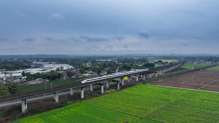 一輛列車運(yùn)行在成都與眉山間(2026年3月3日攝)。 新華社發(fā)(韓旭剛攝)