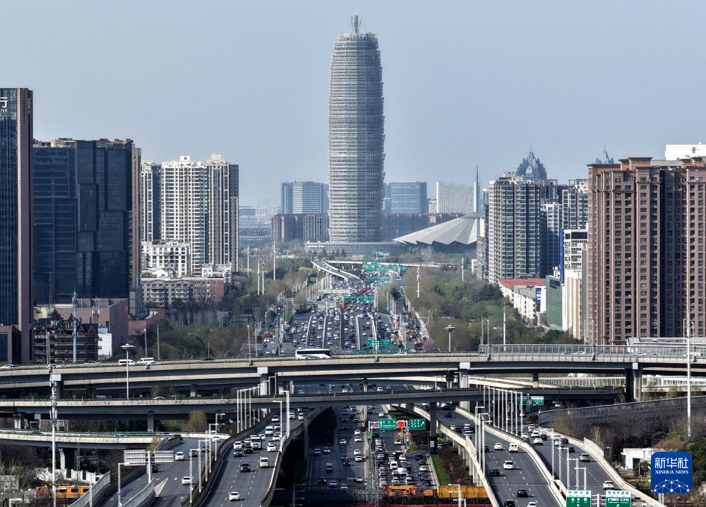 這是3月28日拍攝的河南省鄭州市中州大道(無人機(jī)照片)。新華社記者 李嘉南 攝