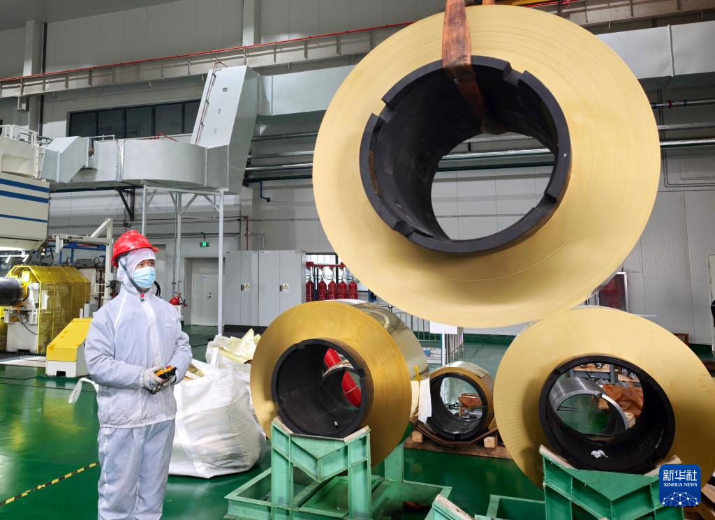 3月19日,工作人員在河南三門峽市靈寶金源礦業(yè)股份有限公司朝輝銅業(yè)箔軋車間進(jìn)行吊裝作業(yè)。新華社發(fā)(肖洋 攝)