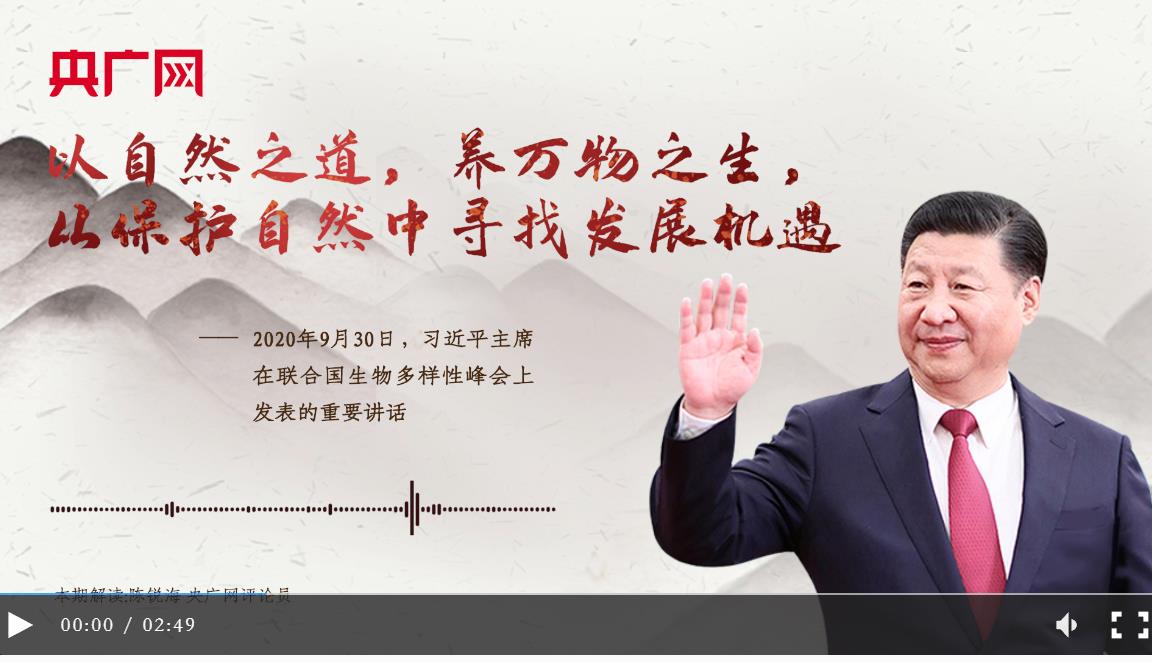 這段話出自2020年9月30日習(xí)近平主席在聯(lián)合國(guó)生物多樣性峰會(huì)上發(fā)表的重要講話。
