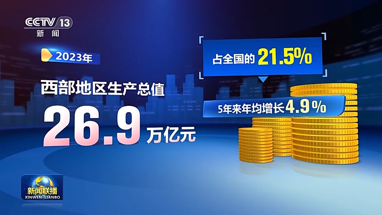 黨的十八大以來,習(xí)近平總書記考察調(diào)研的足跡遍布西部12個省區(qū)市,為新時代西部地區(qū)發(fā)展把脈定向、擘畫藍(lán)圖。黨的二十大報告提出,推動西部大開發(fā)形成新格局。沿著總書記指引的方向,西部地區(qū)抓重點、補(bǔ)短板、強(qiáng)弱項,經(jīng)濟(jì)社會發(fā)展取得重大歷史性成就。國家發(fā)展改革委等部門數(shù)據(jù)顯示,2023年,西部地區(qū)生產(chǎn)總值26.9萬億元,占全國的21.5%,5年來年均增長4.9%。