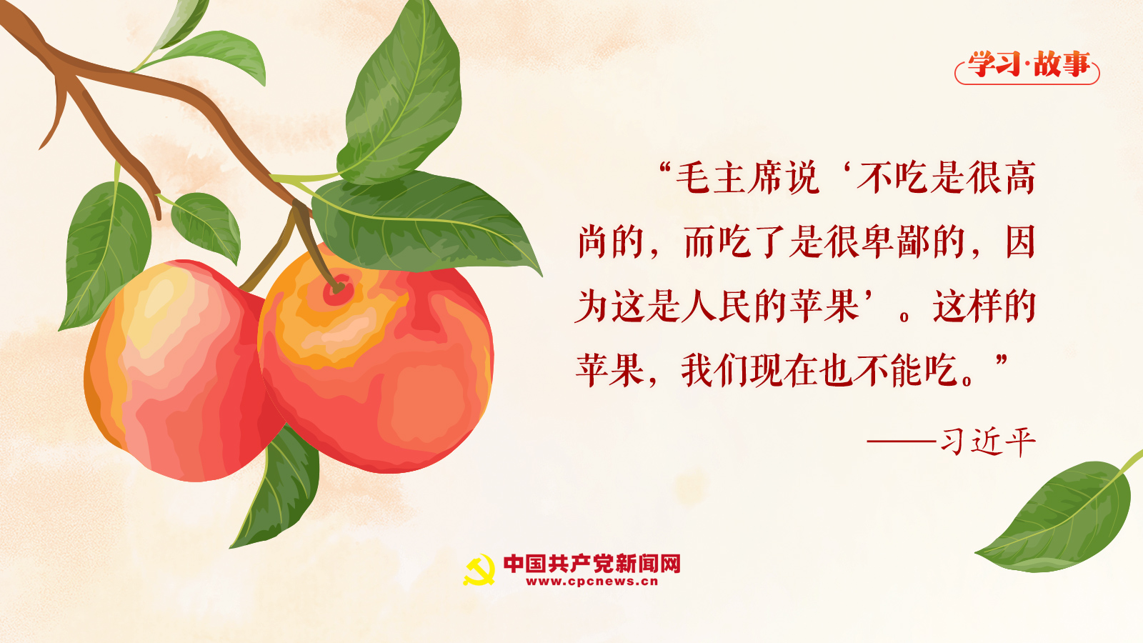 “毛主席說‘不吃是很高尚的,而吃了是很卑鄙的,因為這是人民的蘋果’。這樣的蘋果,我們現(xiàn)在也不能吃?!绷?xí)近平總書記意味深長地說。