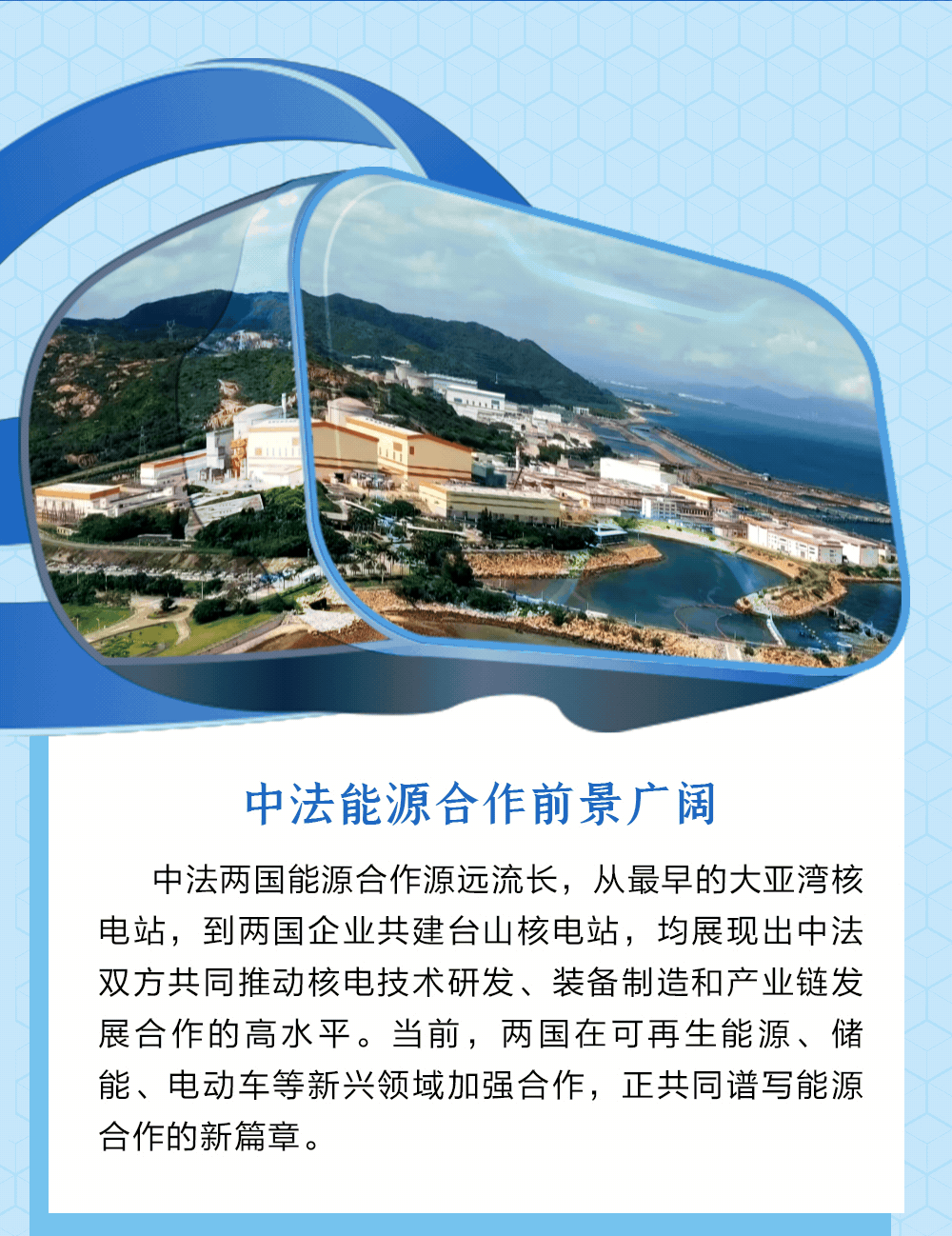 “法國是第一個同新中國正式建交的西方大國,也是最早同中國建立戰(zhàn)略伙伴關(guān)系和開展戰(zhàn)略對話、最早同中國開展民用核能合作的國家。”習(xí)近平主席強調(diào),中法是特殊的朋友,共贏的伙伴。