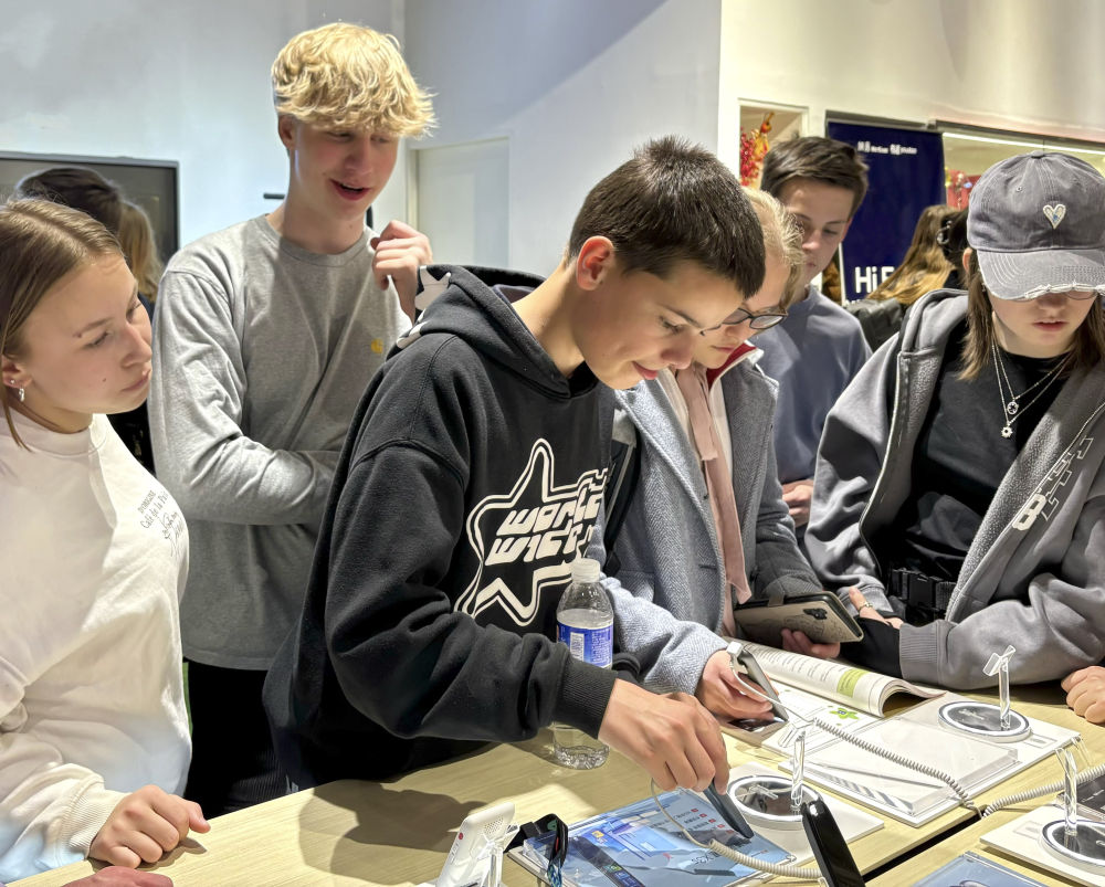 2024年4月9日,中德兩國中學(xué)生在位于北京中關(guān)村軟件園一家企業(yè)參觀?! ⌒氯A社記者 趙旭 攝