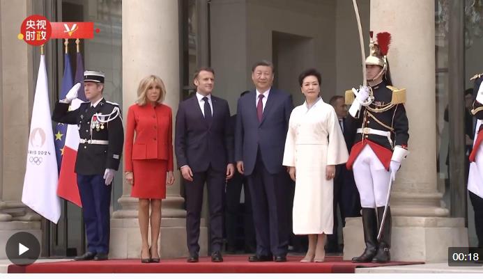 當(dāng)?shù)貢r間5月6日下午,國家主席習(xí)近平和夫人彭麗媛乘車抵達(dá)愛麗舍宮。
