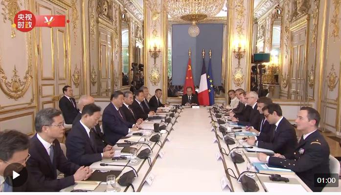 當(dāng)?shù)貢r間5月6日下午,國家主席習(xí)近平在巴黎愛麗舍宮同法國總統(tǒng)馬克龍舉行會談。