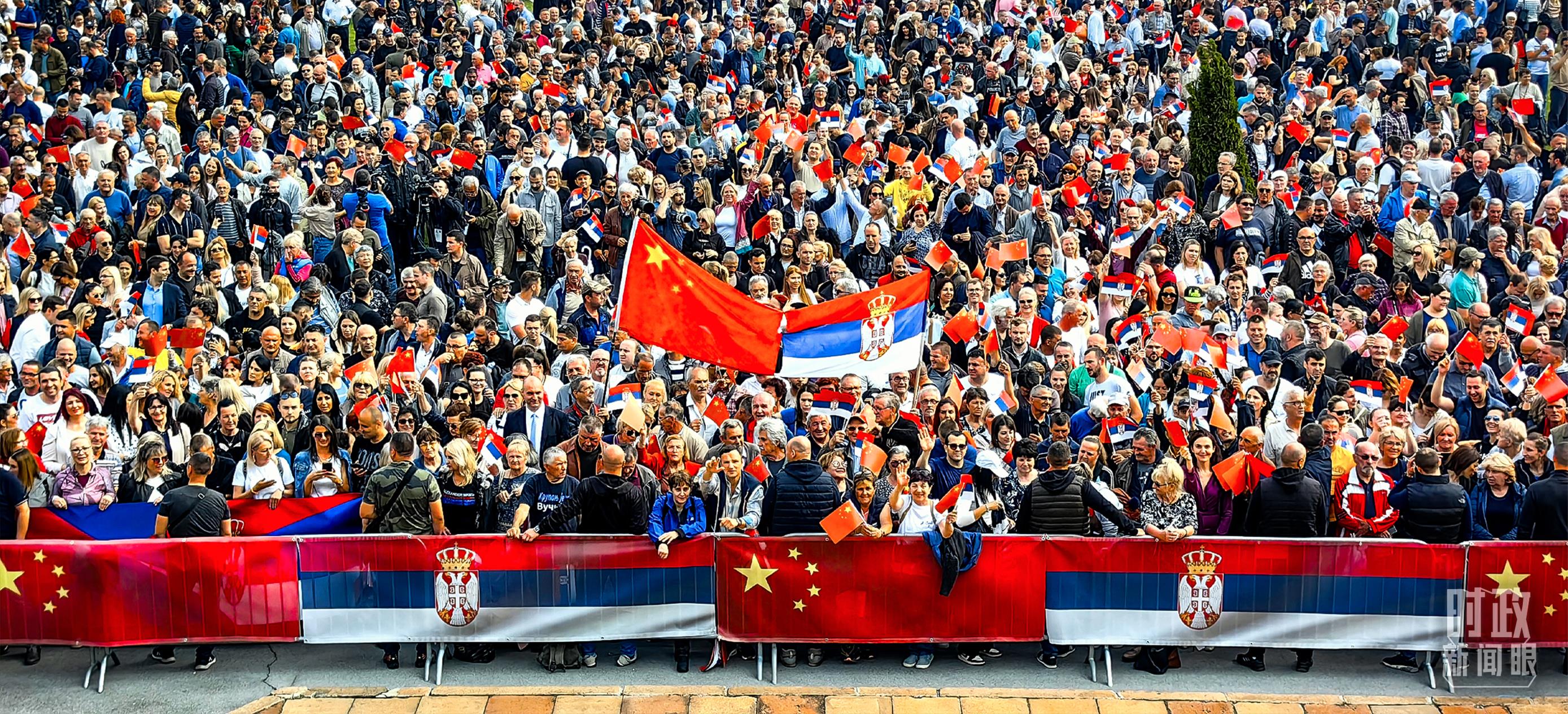 一萬(wàn)五千名塞爾維亞民眾齊聚塞爾維亞大廈廣場(chǎng),熱烈歡迎習(xí)主席到訪(fǎng)。(總臺(tái)央視記者段德文拍攝)