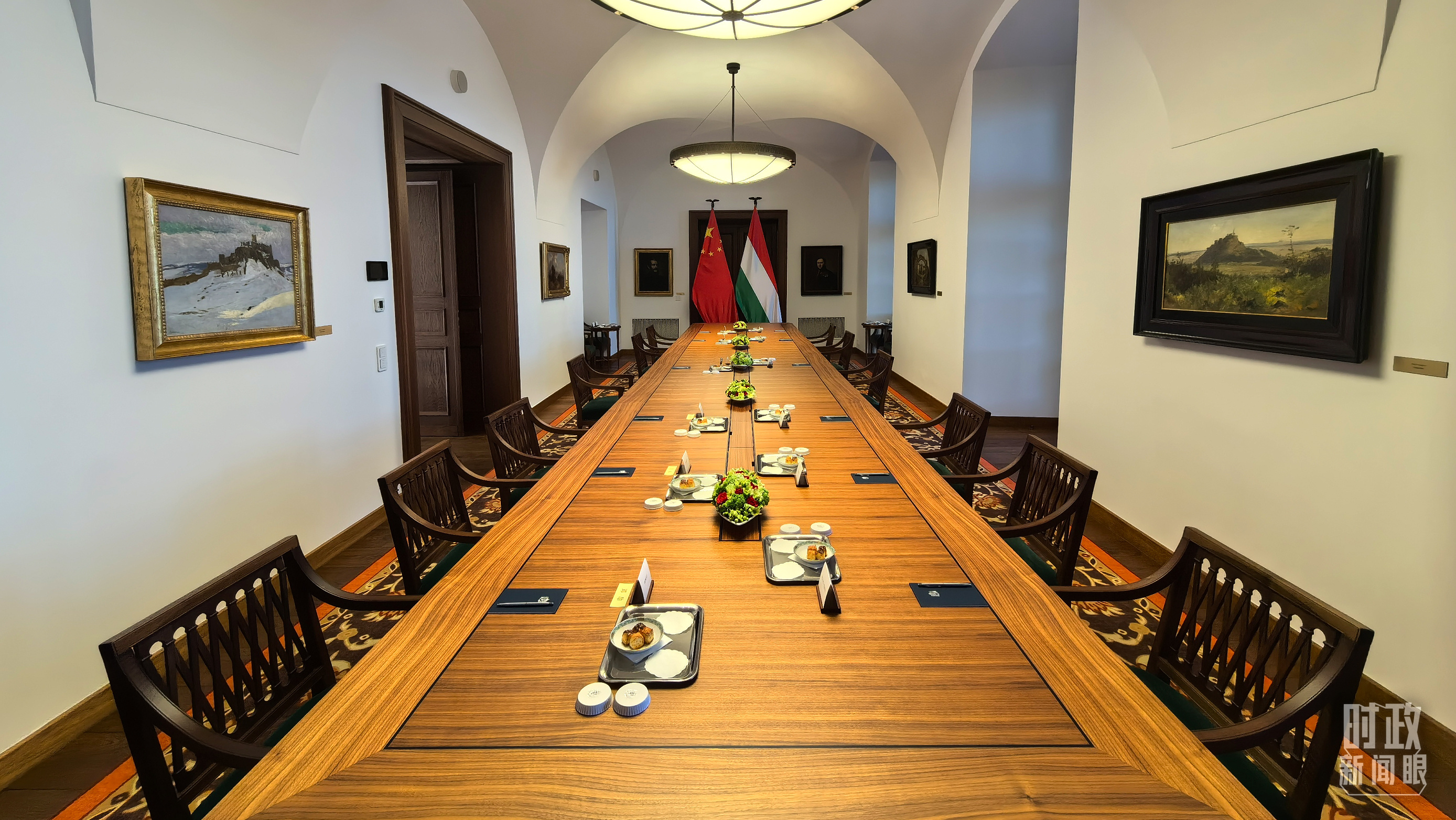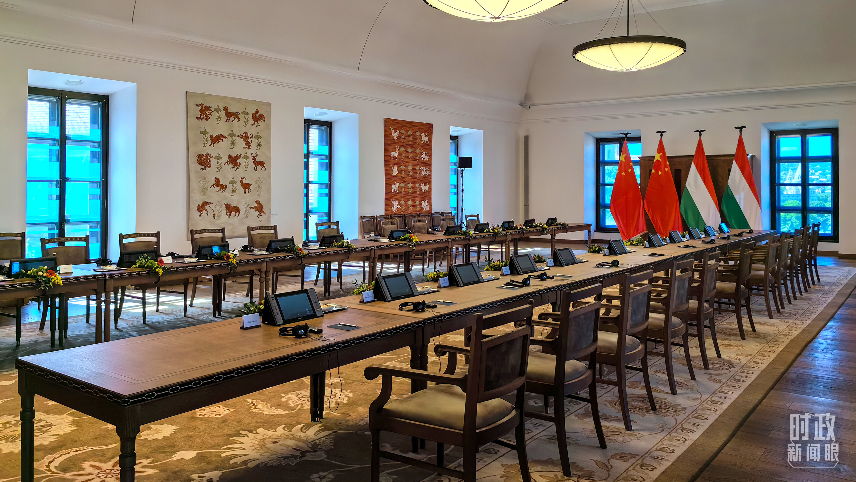習(xí)主席和歐爾班總理在這里舉行大范圍會(huì)談。這是會(huì)談開始前的現(xiàn)場(chǎng)。(總臺(tái)央視記者陸泓宇拍攝)