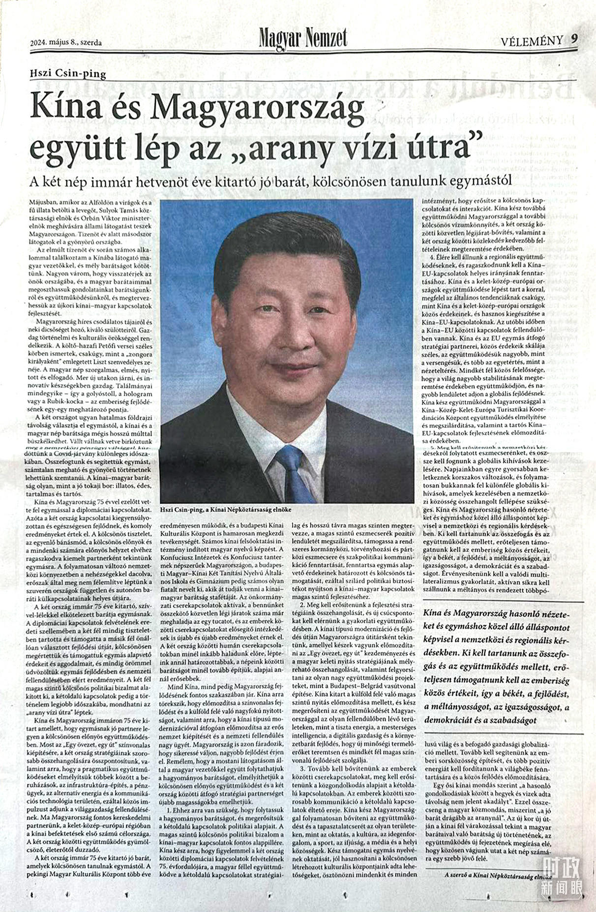習(xí)主席在匈牙利《匈牙利民族報(bào)》發(fā)表的署名文章。(總臺(tái)記者沃龍拍攝)