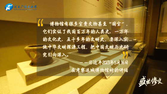 他強調,博物館有很多寶貴文物甚至“國寶”,它們實證了我國百萬年的人類史、一萬年的文化史、五千多年的文明史,要深入實施中華文明探源工程,把中國文明歷史研究引向深入。