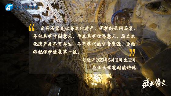 云岡石窟是世界文化遺產,保護好云岡石窟,不僅具有中國意義,而且具有世界意義。歷史文化遺產是不可再生、不可替代的寶貴資源,要始終把保護放在第一位。