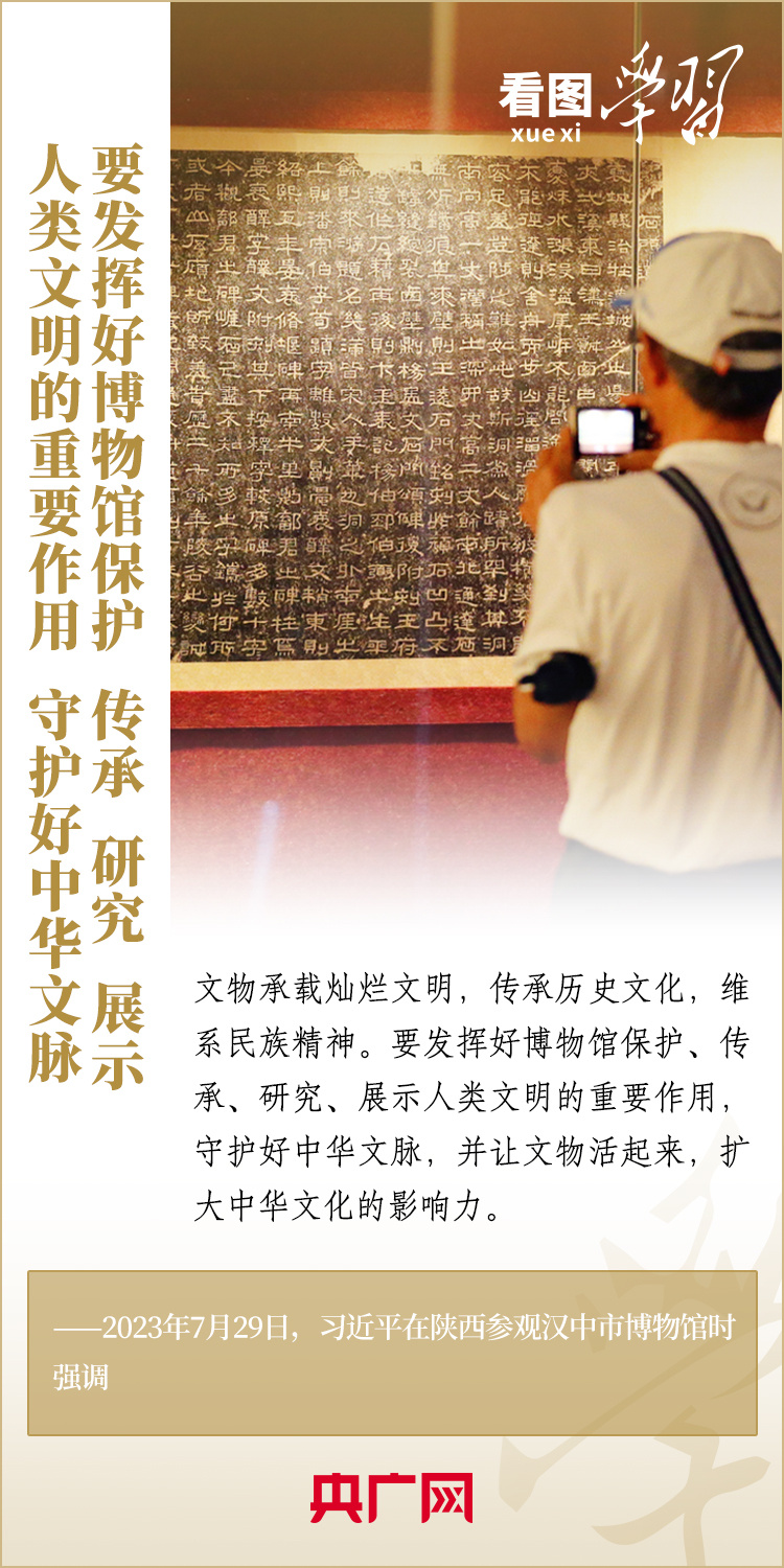 “一座博物館就是一所大學?!薄安┪镳^很重要,我從小就愛看博物館,小時候北京的博物館我差不多都看過了”“博物館建設要更完善、更成體系,同時發(fā)揮好博物館的教育功能”……在國內考察中,習近平總書記曾經多次走進當地博物館,了解館藏文物的收藏、保護、研究情況,對博物館建設和利用作出重要指示。一起來學習!