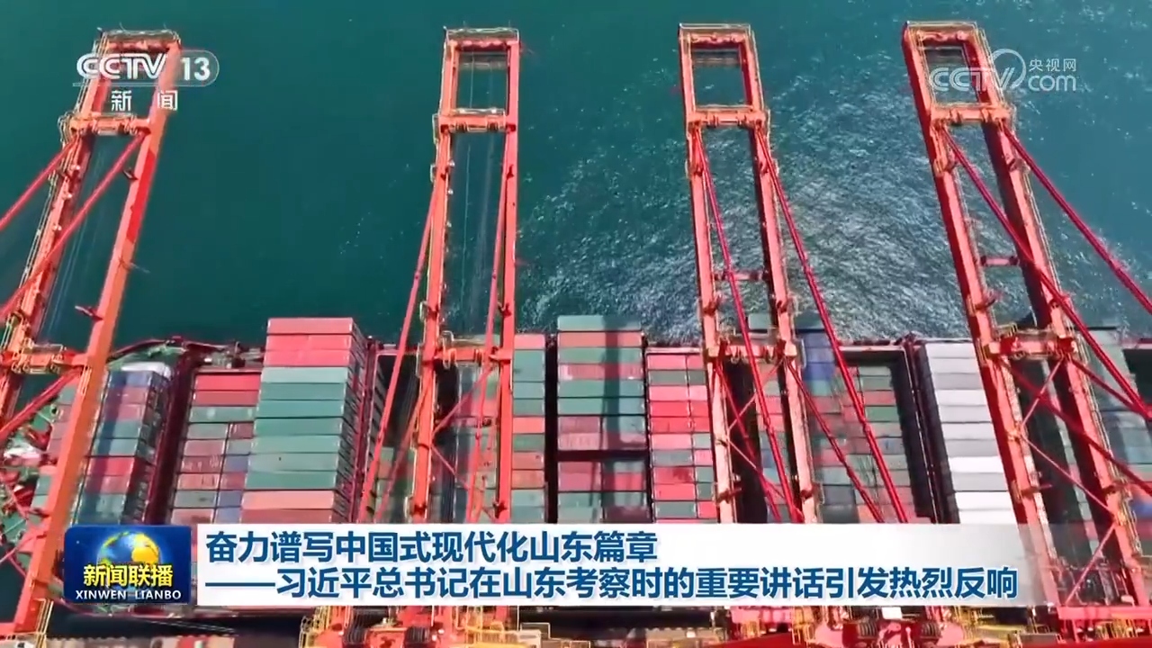 黃海之濱,山東日照港全自動化集裝箱碼頭上無人駕駛集裝箱卡車往來穿梭。習近平總書記首先來到這里考察,他指出,日照港近年來推進科技創(chuàng)新,將傳統(tǒng)港口改造升級為現(xiàn)代化港口,不僅貨物吞吐量躋身全國前列,還積累了通過傳統(tǒng)產(chǎn)業(yè)改造升級發(fā)展新質(zhì)生產(chǎn)力的經(jīng)驗,值得肯定。